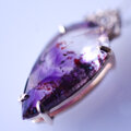 濃いパープルからクリアへとグラデーションになっているアメジストにたっぷりとレッドや星屑のようなシルバーのキラキラしたインクルージョンが入っているアメジストエレスチャル。
