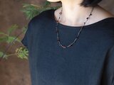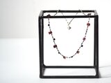 四角いガーネットとブラックスピネル、赤と黒が際立つシャープな印象の編み込みネックレス