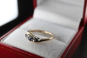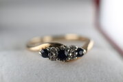 英国 イギリス ビンテージ ゴールド リング 指輪 レディース 天然 サファイア ダイアモンド 純金率 375 J87
