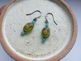 オリーブ色のチェコビーズと天然石のアマゾナイトのピアスです