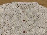 上品で繊細な優しさのある生成り(ホワイトベージュ)色の手編みカーディガン。