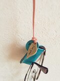 メガネホルダーネックレス チャーム付 セルリアンブルー オイルヌメ