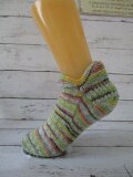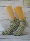 ドイツのブランド Rico Design Superba Bamboo 032と名前のついている糸で編んだ chiharu.amukoのIDでインスタグラムで活動されている方のレシピで編んだコットンソックスです。