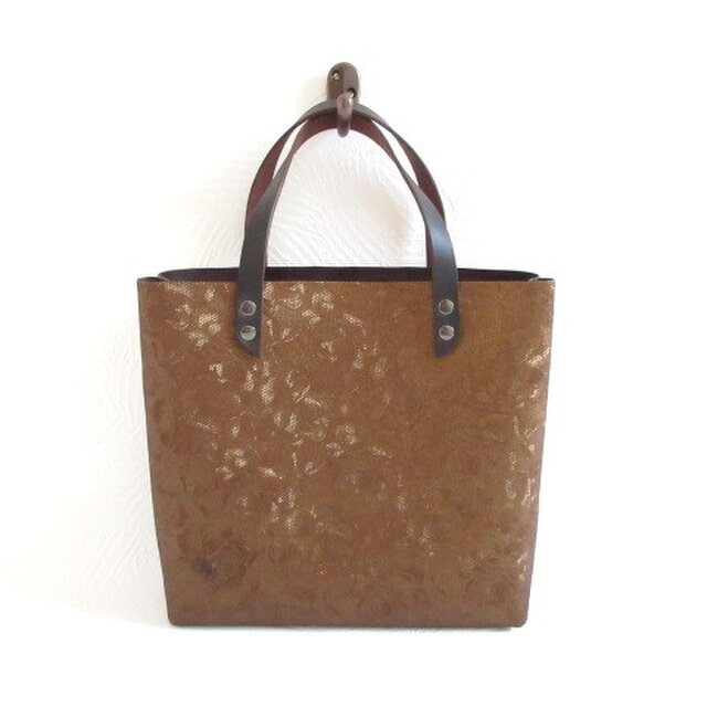 ブランズカラーにフラワーのグラデーションの型押しが施され重厚感のある仕上がりです。