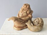 素焼きの陶(素地)+ 胡粉ジェッソ・アクリルガッシュ・保護バーニッシュ(ニス)