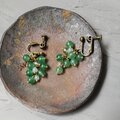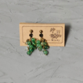 アンティーク調の金具に、まるで酸っぱそうな葡萄の果実のようにきらめく緑色のビーズをあしらった、優雅で遊び心のあるイヤリングです。耳元でビーズが優しく揺れるたびに、光を浴びて瑞々しく輝きます。小ぶりながらも存在感があり、いつもの装いにさりげないアクセントを加えてくれます。