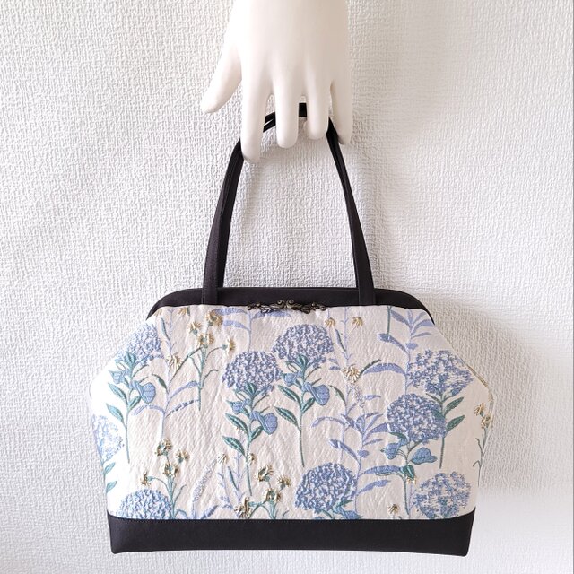 口金部分と底、持ち手はスエード調の生地を使っています。