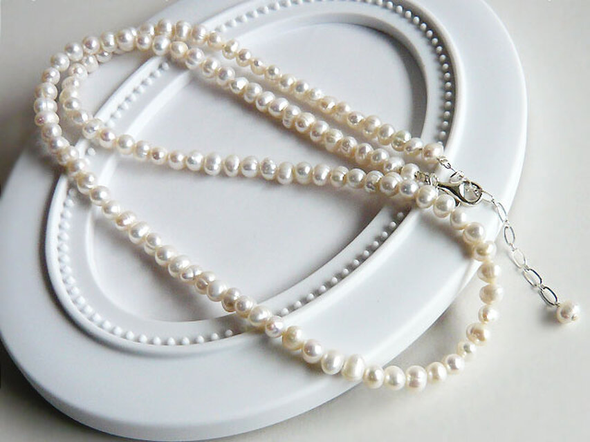 プチ淡水パールのシンプルなロングネックレス上品で可憐な作品が届きました 有難うございます 素肌に? 黒のタートルに? 迷ってしまいます