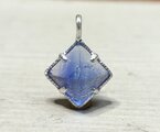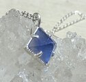 コバルトブルーの濃淡が綺麗なグラデーションピラミッド*透明感に優れたニューメキシコ州産フローライトのシルバーペンダントです*白熱灯光では紫色にカラーチェンジします*フローライトは劈開方向がハッキリしているため金具の差し込み接着では力が加わった際に割れてしまう可能性が極めて高いのでそれぞれの形状に合わせた石枠を製作しております*裏面は平面のピラミッド形状、劈開面特有の質感をお楽しみ下さい*通常、黒化遅延処理を施しますが銀そのものの変化をお好みの場合は処理不要とお申し付けください*黒化防止ロジウムコーティング(最終画像下段色味参照)ご希望の場合はチェーンとともに承ります(別途1500円)925チェーン1.3㎜40㎝・長さのご希望がございましたら承ります*