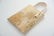 【華模様 ゴールド シルク帯リメイク ミニサブバック フォーマルバック】日常使い、結婚式、パーティー、和装バックにも。