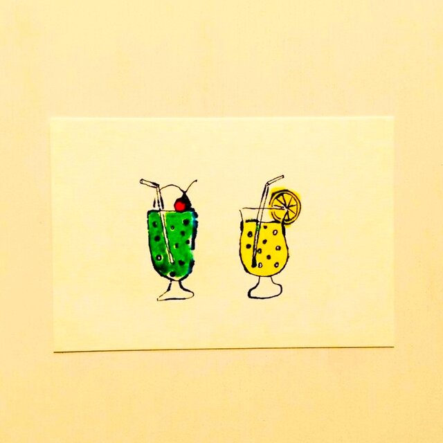 ㊶「クリームソーダとレモンスカッシュ」ポストカード同柄3枚セット 絵葉書 メッセージカード イラスト 送料無料
