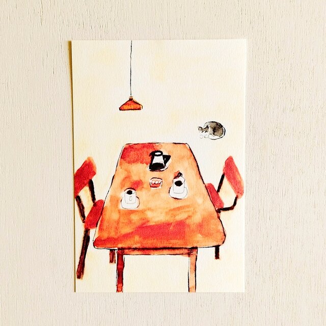 水彩絵の具や水性ペンで描いた、オリジナルイラストのポストカードです。
