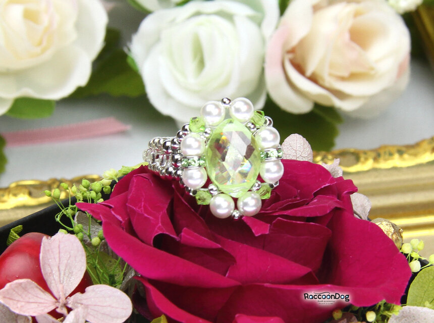 ビーズ,リング,コスチュームジュエリー,ビーズアクセサリー,ビーズリング,スワロ,キュービックジルコニア,ジルコニア,プレシオサ,ペリドット