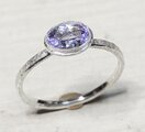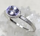 絶妙な藤色~すみれ色のタンザニア産非加熱ゾイサイト*目立ったクラックも無く透明度も高く煌めきも良いですが少々カッティングが正確ではなく比較的リーズナブルです、この色合いがお好きな方へ*リングは古鉄錆のようなマット仕上げ、8~18号(推奨サイズ)の範囲を目安に調整可能、サイズ確定後にマットな覆輪で石留め致します*通常、黒化遅延処理を施しますが銀そのものの変化をお好みの場合は処理不要とお申し付けください*黒化防止ロジウム(最終画像下段色味参照)など各種コーティングご希望の場合は承ります(別途1000円)