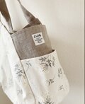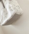 持ち手以外の部分にはすべて芯地を使用してしっかりと仕上げています。持ち手も生地を4枚重ねにして、丈夫に仕上げています。持ち手は長めにしていますので、肩掛けも可能です。