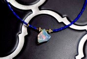 瑠璃色のネックレスの中央で美しく輝くオパールをお楽しみいただける大人の女性のネックレスです。