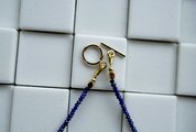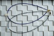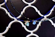 直径2mm程度のボタンカット型ラピスラズリをソフトタイプのワイヤーに通してつなげていったネックレスです。