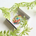 サーモンオレンジのコットン地にことりと小さな草花を彩りよく丁寧に刺繍しました。
