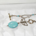 爽やかなブルーのターコイズ(トルコ石)のネックレスです。トップのターコイズは24×18mmの大粒です。丸い小粒のターコイズも鮮やかな色合いです。