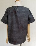 後ろ襟ぐりに涙開きがあります。ループ釦が付いています。