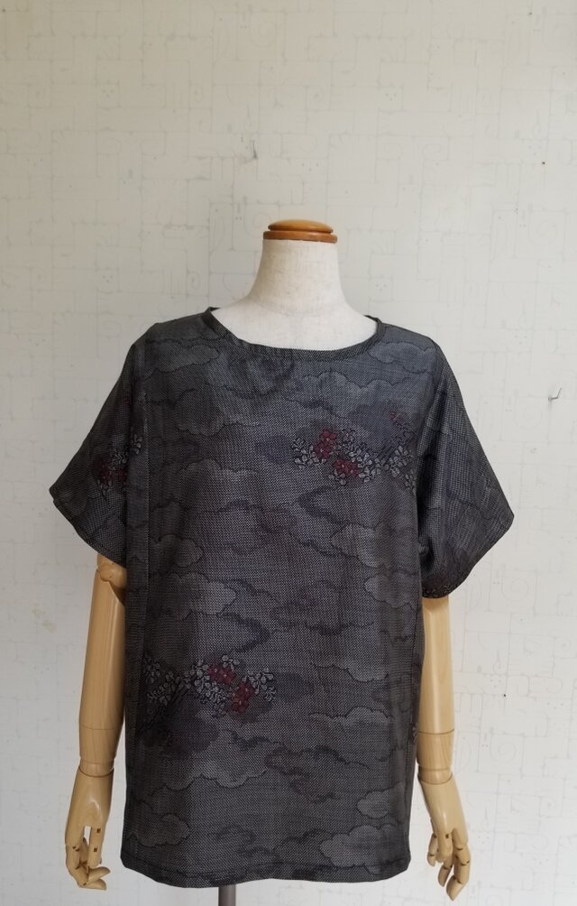 アンティーク、雲取りに花模様織り出し本場大島紬(7マルキ)から作りました。