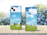 空には紙飛行機が舞い上がっています。おだやかでほのぼのとしたデザインの帯なしiPhone手帳型スマホケースです。
