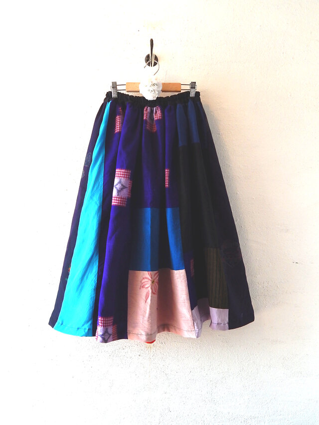 着物地、浴衣地などなど、さまざまなデザインを組み合わせることで、ポップで大人かわいいスカートになりました。