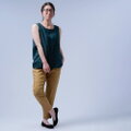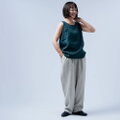着丈はおしりの半分あたり。腕回り首まわりは空きすぎずちょうどよかったです。インナーでも、裏返してトップスとして着たりどちらでも対応できる万能なタンクトップです。リネンのさらっとした肌当たりが心地よく、なんといっても縫い目が裏も表もとても綺麗に施されていてこんなタンクトップは見たことがないので感動しました。肌が喜び、嬉しい気持ちで一日がはじまりそうです。