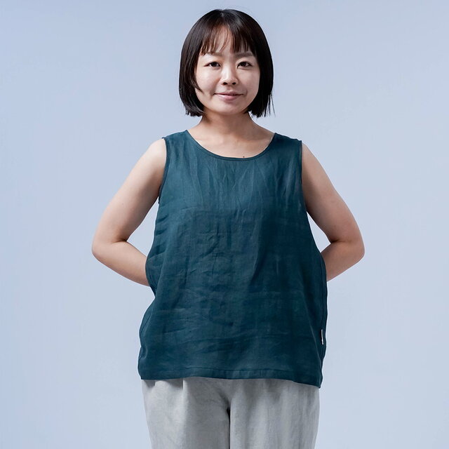 麻 Linen リネン リネンタンクトップ タンクトップ ノースリーブ タンク インナー 敏感肌用 アトピー肌用 トップス リネンインナー オールシーズン 春 夏 秋 冬 グリーン 緑 緑色