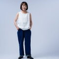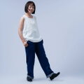 【soco】ふわっと心地いい デニムボールパンツ / ダークインディゴ b014s-din3wafuさんのパンツは3本目になりましたが、初めてのデニムです。 年齢とともにデニムが難しく感じるようになり、いつの間にかワードローブからデニムが消えていました。 久しぶりのデニムはダボッとして着心地がよく、カジュアルすぎず、とてもいい感じです。