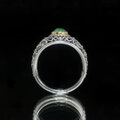 シルバーのアームには花唐草の透かし模様、純金のふくりん留めには丁寧にミル打ちを施し、個性的かつアンティークな雰囲気にお仕立てしております。