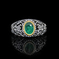 天然エメラルドですのでインクルージョンやクラック等はありますが、全体の雰囲気を大きく損なうような難点はなく、カボションとしては透明感のあるルースを選んでおります。