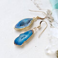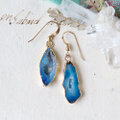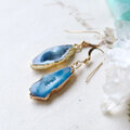 細かな結晶が集まって砂糖菓子のようにきらきらと光るドゥルージーと、アゲートらしい鮮やかなブルーの縞模様が楽しめる天然石。