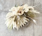 花材:ドライフラワーパームフラワー・ソーラーピオニー・ワイルドファンネル・テールリード・ソーラーローズ・リューカデンドロン・セージ・ルスカス・パームサンリーフ・レースフラワー・山シダ・ミツマタ・アーティフィシャルフラワーゴールドリーフなど