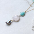 素材:アマゾナイト・ローズクォーツ・パール・K14ゴールドフィルド(チェーン・金具)