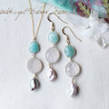 アマゾナイト・ローズクォーツ・パールのピアス w1361