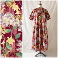 レディのためのチェリーワンピース(5分袖):115cm丈(紫陽花:ワイン)