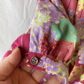 着丈115cm(切り替えまで50cm+スカート65cm)、首回り36cm、肩幅40cm、そでぐり46cm、袖丈35cm、バスト116cm、切り替え126cm、すそ180cm