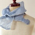 泥染めの藍を使って、薄手のリネンミニストールを染めました。