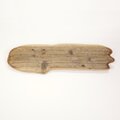 お色は 木の色素が残る 濃いめの木の色、表面は木目が浮き出ており、釘穴2つに キズもたくさん入っています。