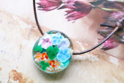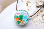 水色×青の地に、朝顔を咲かせ金魚を泳がせました。