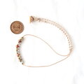 マットなベージュやブラウンに淡いブルーやオレンジなどが混ざった味わいのあるインプレッションストーンにアンティークブラス色のグラスビーズを合わせ、ライトブラウン色のポリエステルコードで繋いだナチュラルな雰囲気のショートネックレスです。