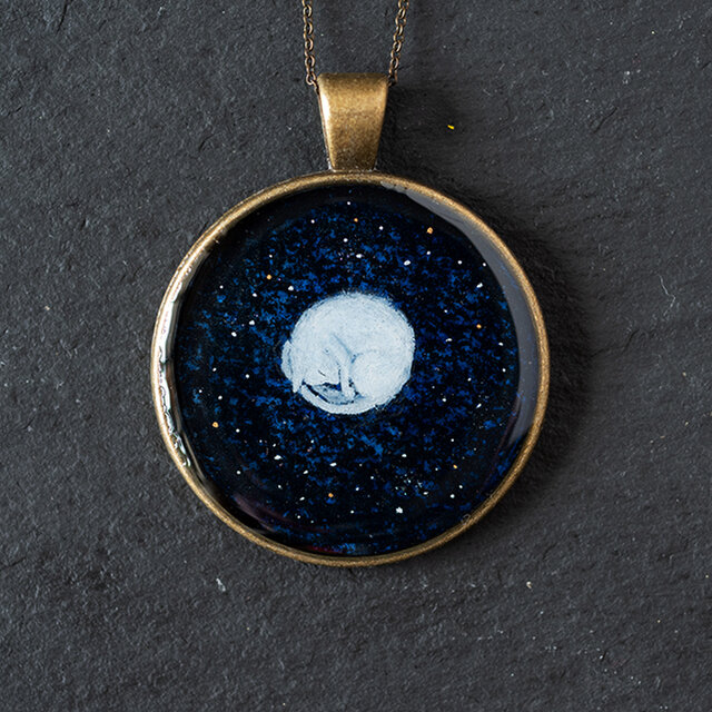 丸くなって眠るねこを描いたオリジナルイラスト(原画)を樹脂でとじこめました。
