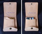 ・カードポケットを浅くすると取出し易いのですが、マネークリップを閉じた時にカードの取出し方向に落とす不安がありましたので、ポケットが深くなるようにカードを縦(長手)方向に収納し、万が一、飛び出そうとしてもお札がストッパーの役目をするようにしました。