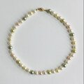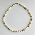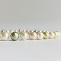 こちらはガラス素材の原玉に、オリジナルパール塗料にて何層にも渡り重ね塗りを施した日本製ガラスパールを使用しております。パール間には1つづつ丁寧に結び目を加えたオールノット仕様にしました。複数の異なるカラーのガラスパールをランダムに通したシンプルなネックレスになっております。パールサイズは8mm玉で、長さは標準的なプリンセスサイズの全長約42cmとなっております。暖色系の優しい色味で、ちょっとしたお出かけや普段使いにも気軽にお使い頂けます。