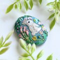 うさぎと草花の刺繍ブローチ(botanical)