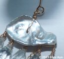 雲の形の芥子パールは、美しい真珠層を正面でご覧いただくようにワイヤーで留めました。