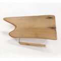 流木板は 厚み 1cm 前後、繊細で優しい木目が水平に流れる中、左はV字にカットされたような 全体的に直線的な形状、右に2つ 細い釘が刺さった状態です。