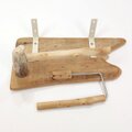 縦の支えとなる枝の流木は 木の色素がモダンに入り、押さえの枝流木は板と同系色、ペーパーを掛けるホルダーの流木は 明るいお色味です。