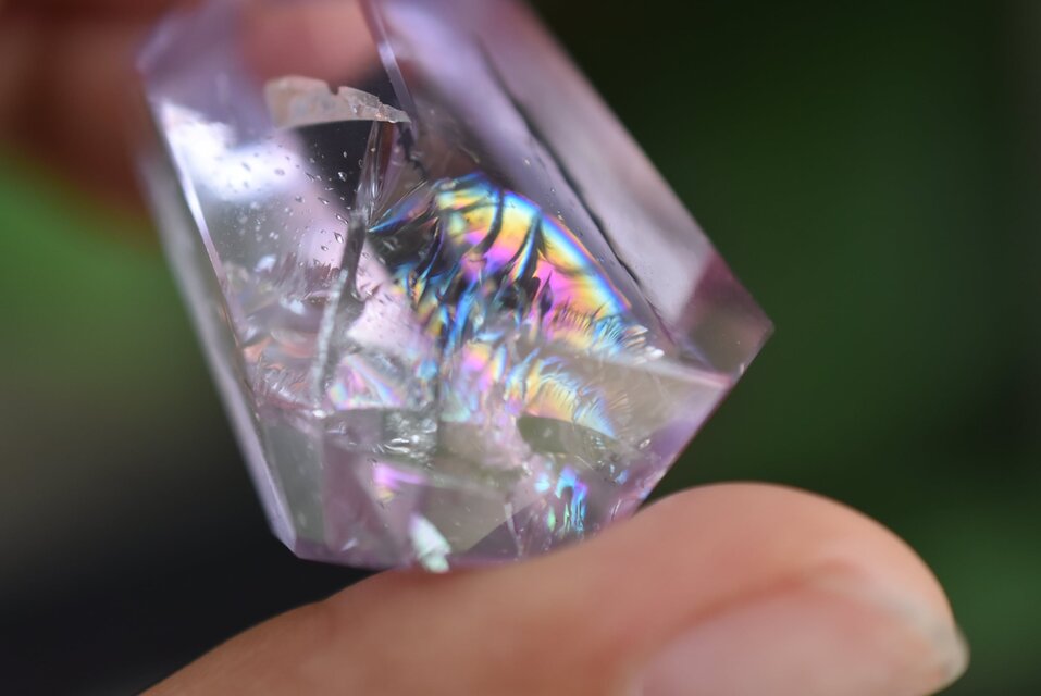 完璧なる原石研磨の透明世界の中に虹が見えます。